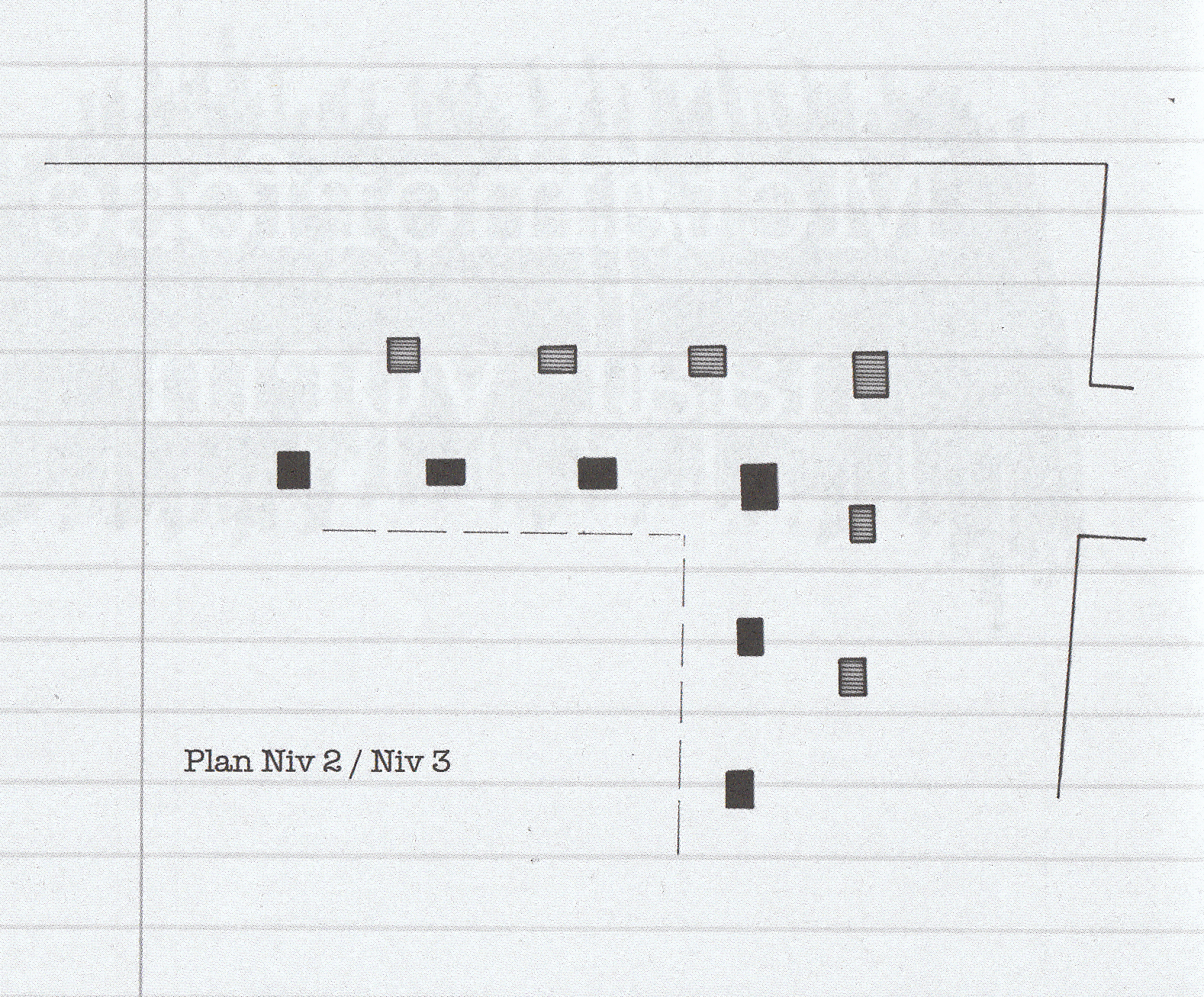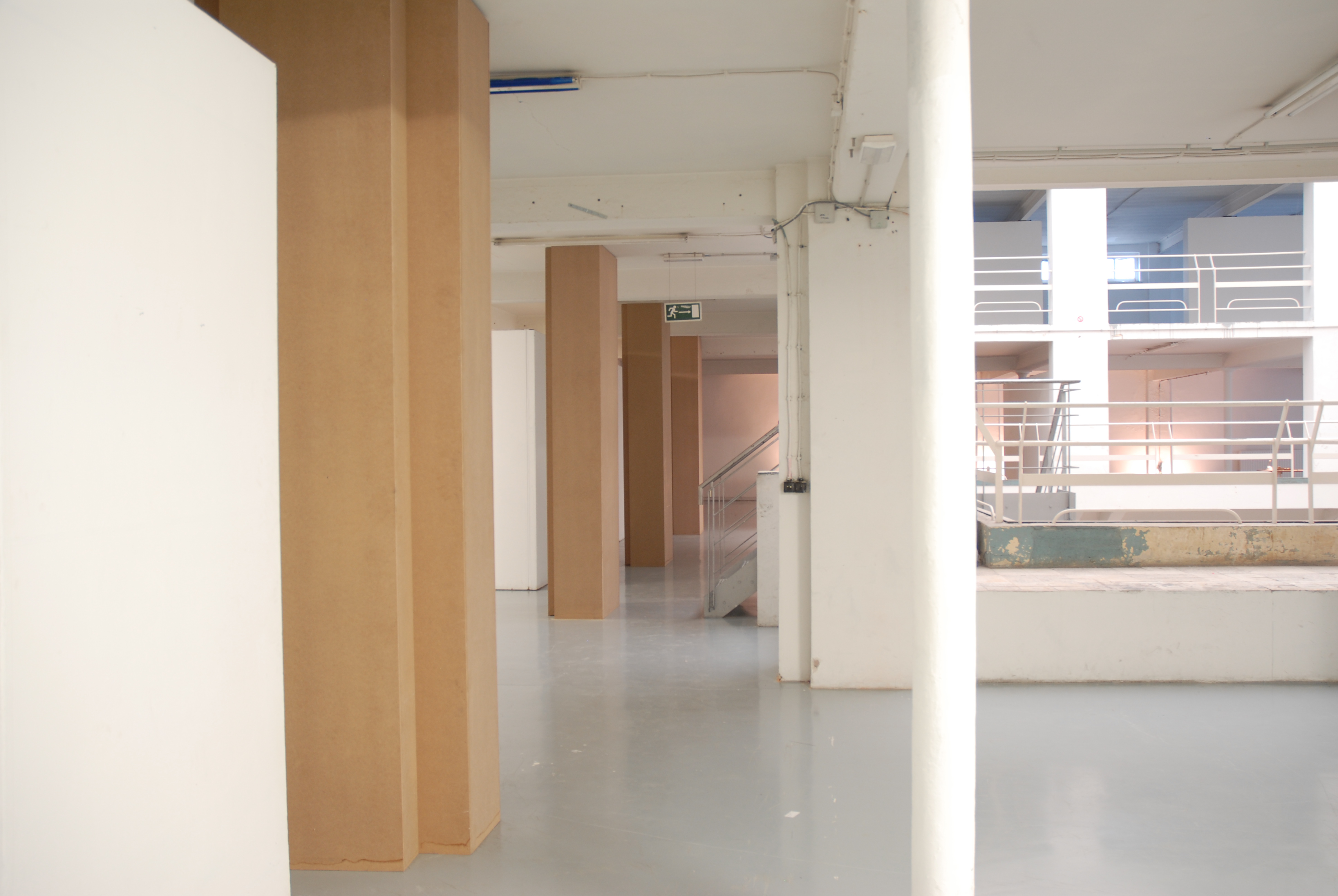 In the conference building we see a clear structure with regard to columns, this intervention plays with this structure. Starting from the existing columns, these are repeated in space. The place where the new columns are placed is determined arbitrarily. The obtained result is a jungle of columns that extend over the 3 floors.