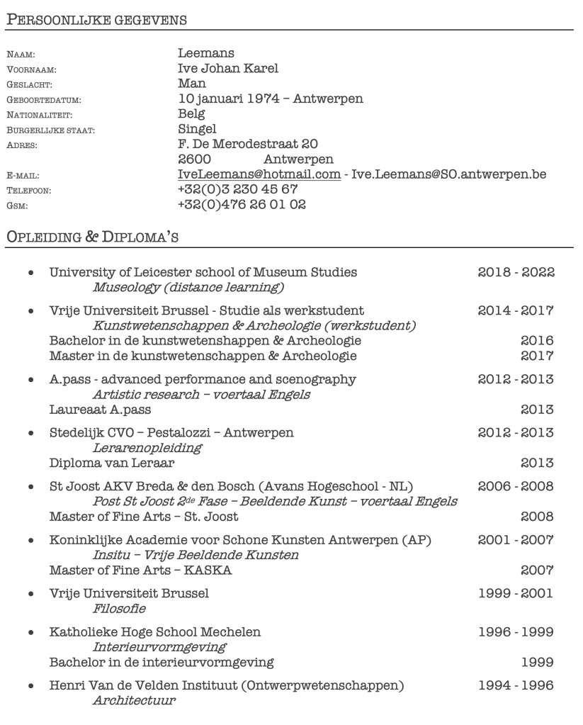 curriculum vitae Ive J.K. Leemans Share this: Share on X (Opens in new window) X Share on Facebook (Opens in new window) Facebook Like Loading...