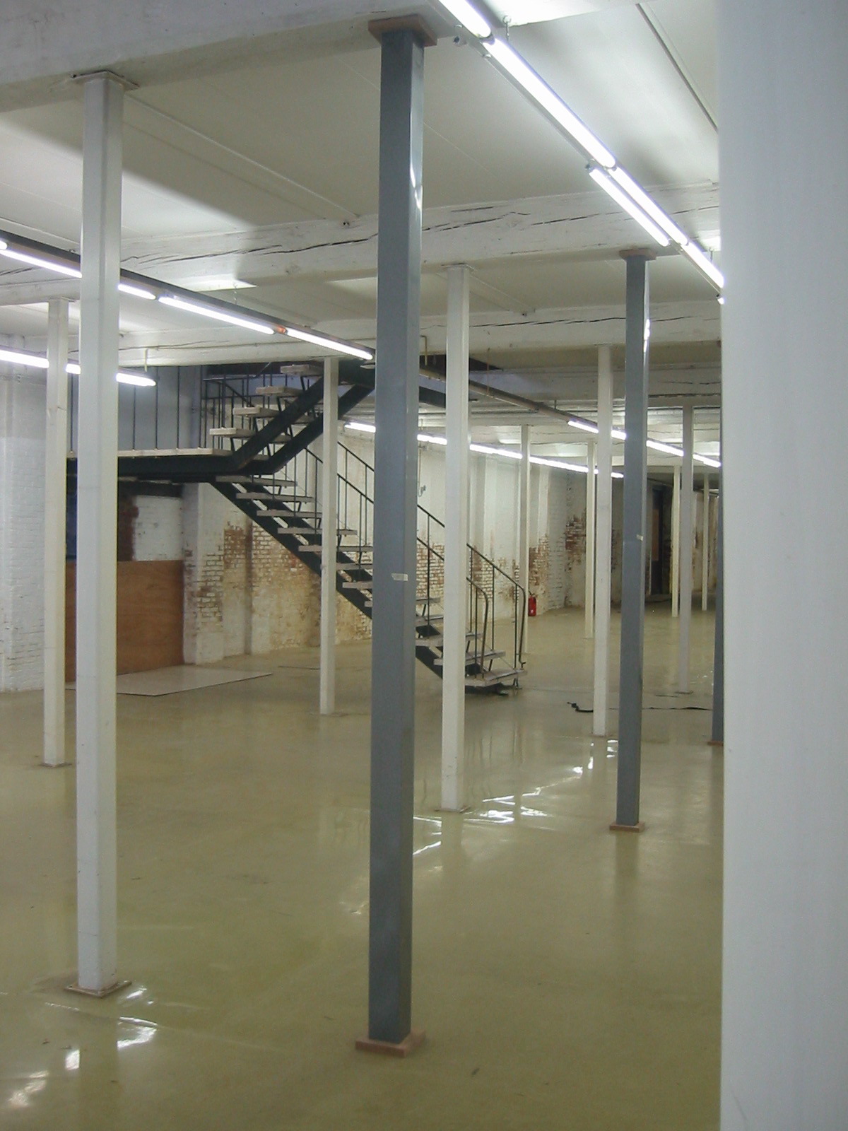 In this former DIY shop a series of 16 pillars is copied into the space to play with the perspective already present in the room. The new series is constructed into an angel to increase the perspective even more